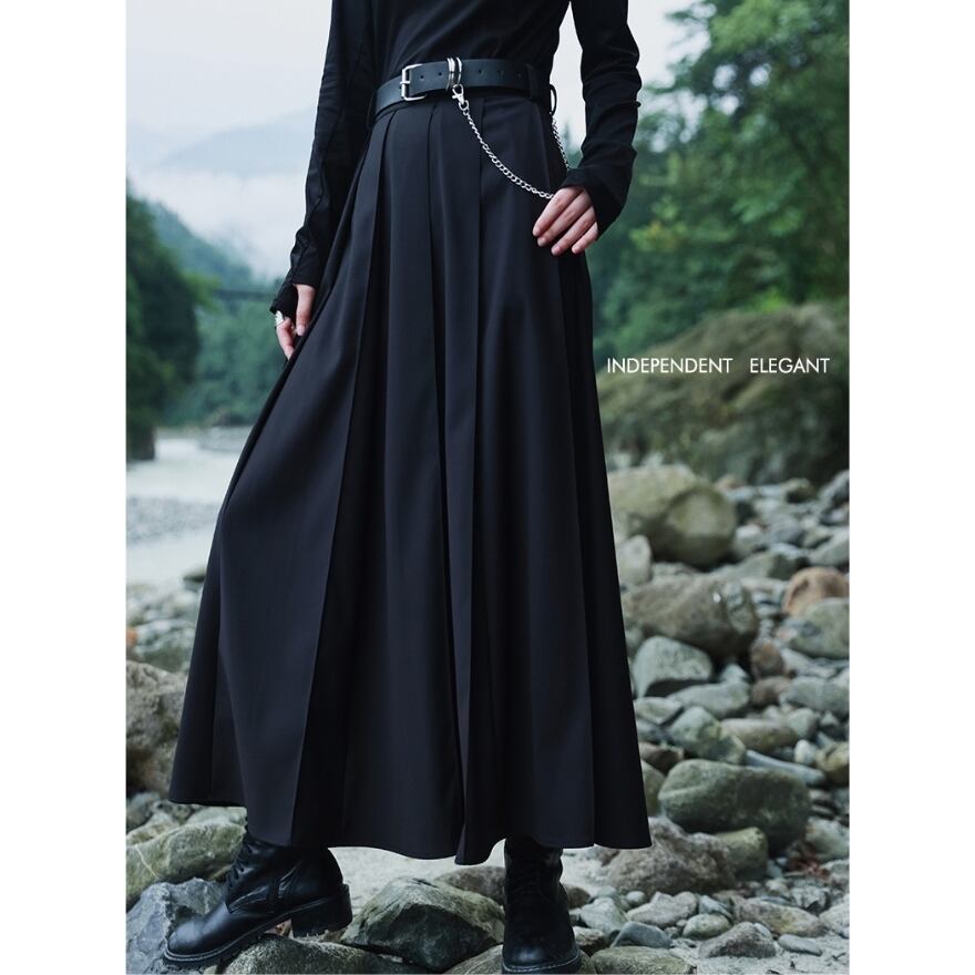 SEASONZ プリーツスカート ロング丈 ベルト付き チャイナ服 高見え 病み可愛い ハイウエスト大人ゴシック ストリート系 ゆめかわ