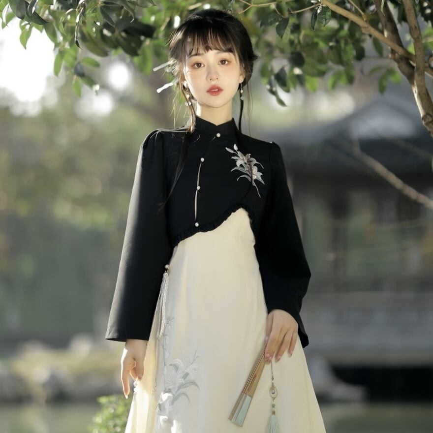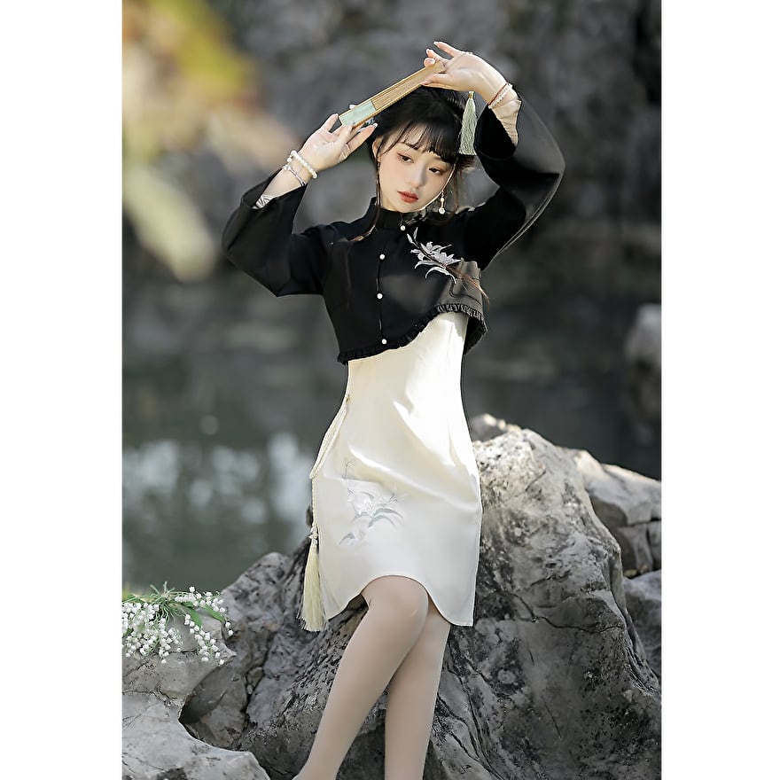 SEASONZ セットアップ チャイナ服 漢服 バイカラー 刺繍 ロリータ 華ロリ 甘め サブカル系チャイナ服 女子会 セレモニーコーデ ゆめかわ