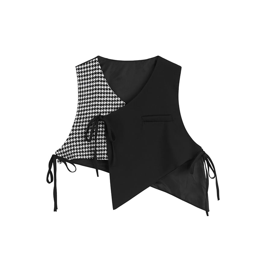 SEASONZ セットアップ 長袖シャツ ベスト 千鳥柄 レトロ アシンメトリー 大人増し きれいめ 大人モード服 女子会 セレモニーコーデ ゆめかわ