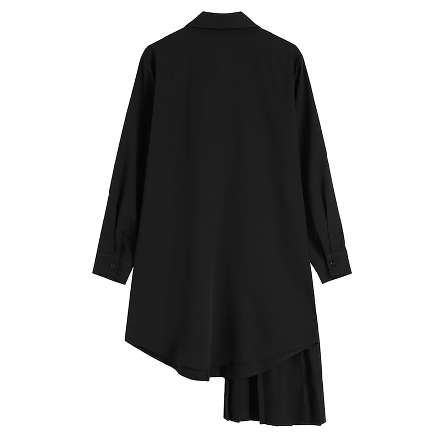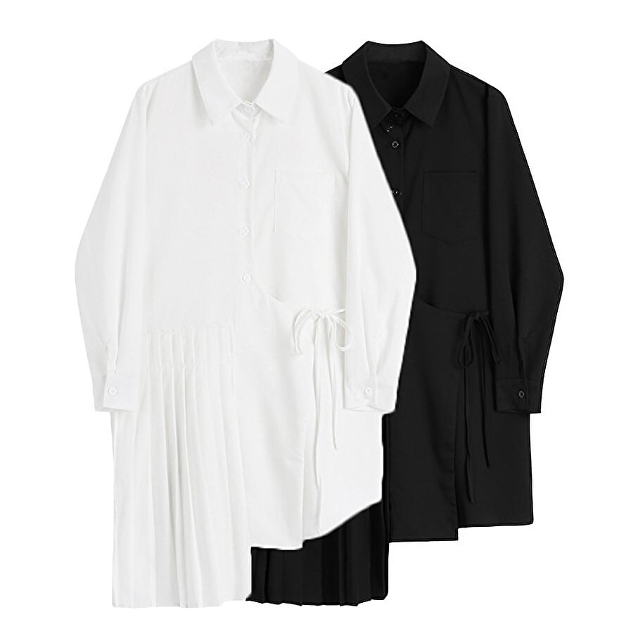 SEASONZ シャツワンピ アシンメトリー プリーツ 大人増し オルチャンファッション 韓国 モード服 女子会 セレモニーコーデ ゆめかわ
