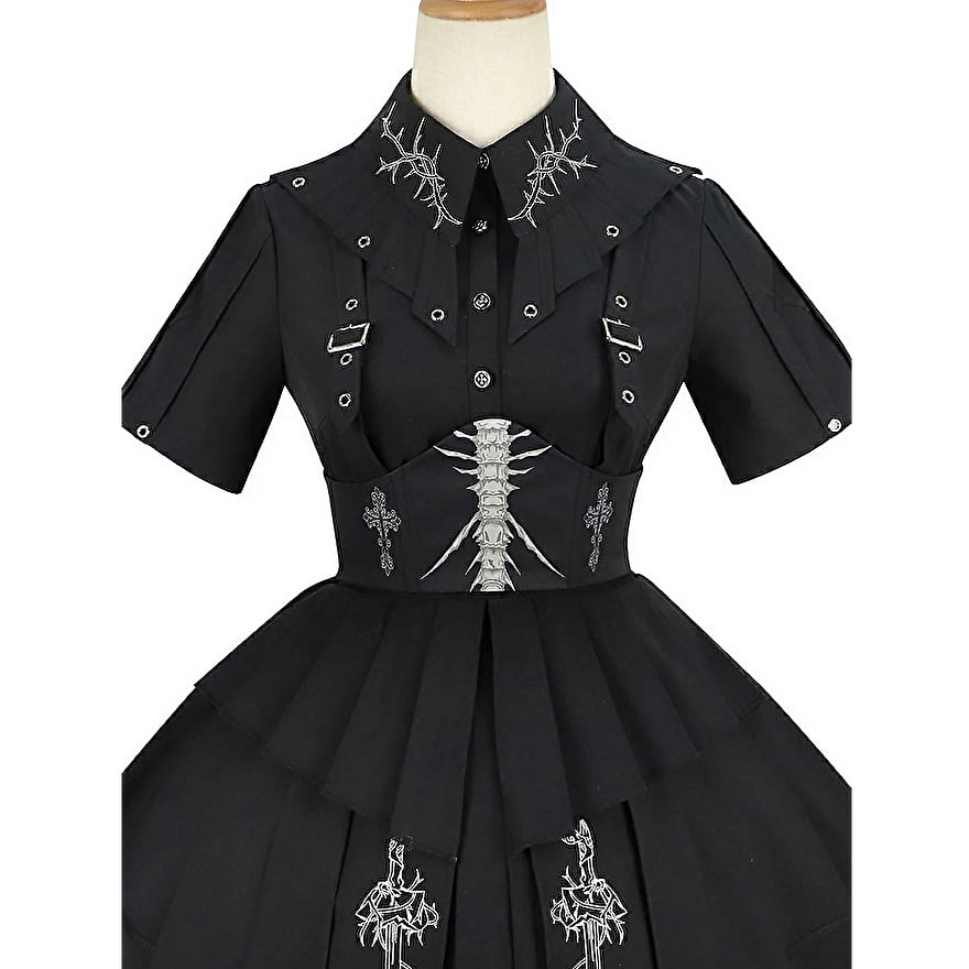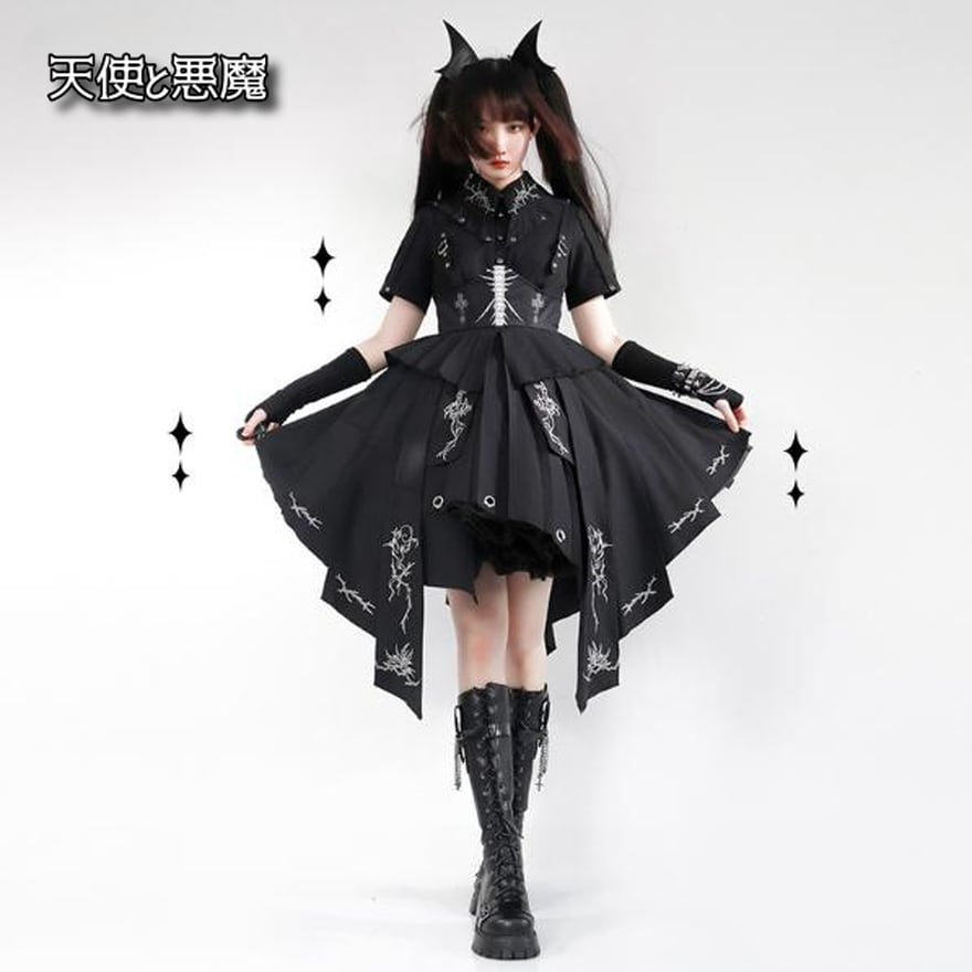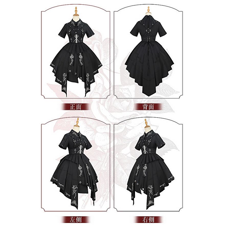 SEASONZ ロリータ好き 軍服ロリータ ワンピース アシンメトリー プリーツスカート ゴシック 病み可愛い COS コンカフェ衣装 ロマンティック
