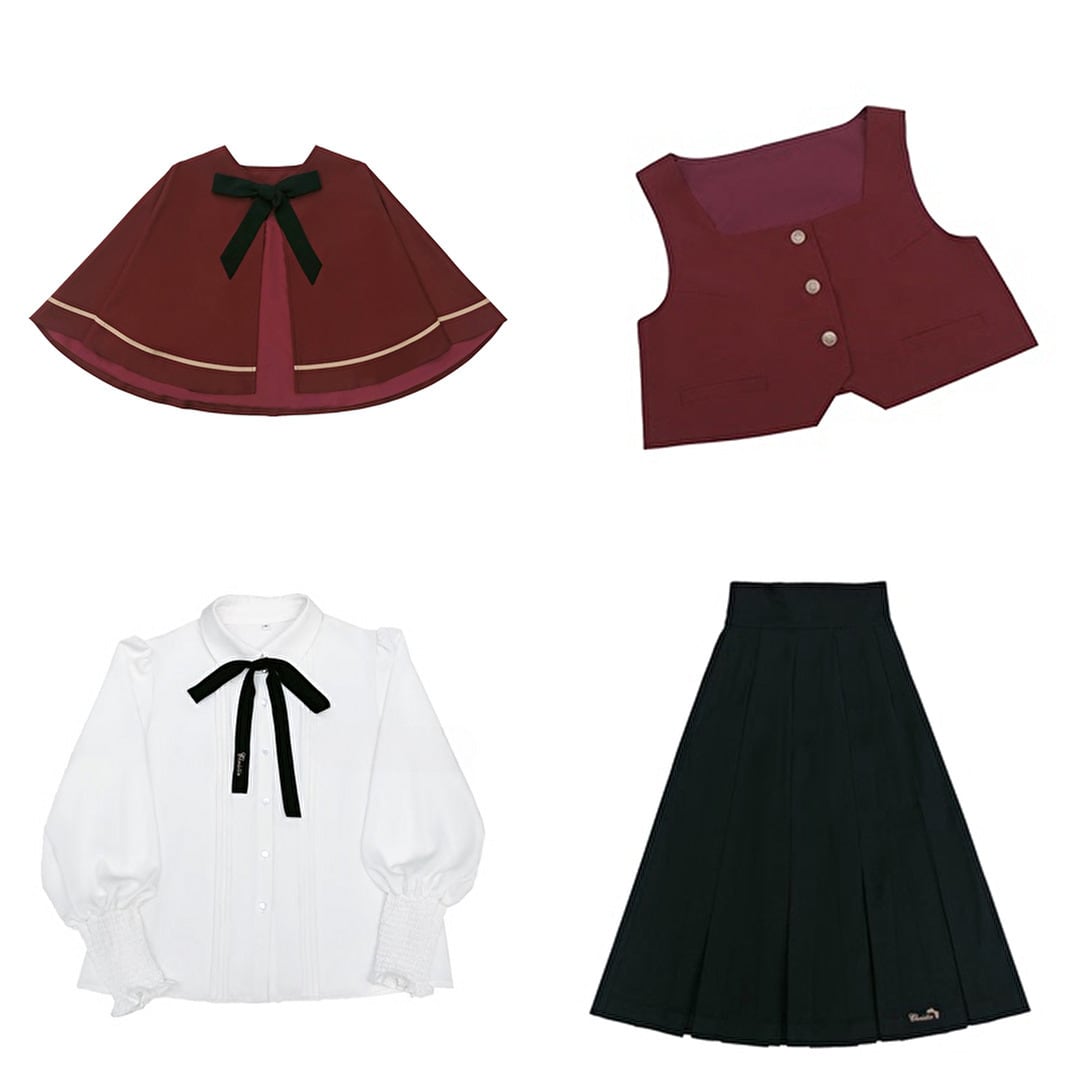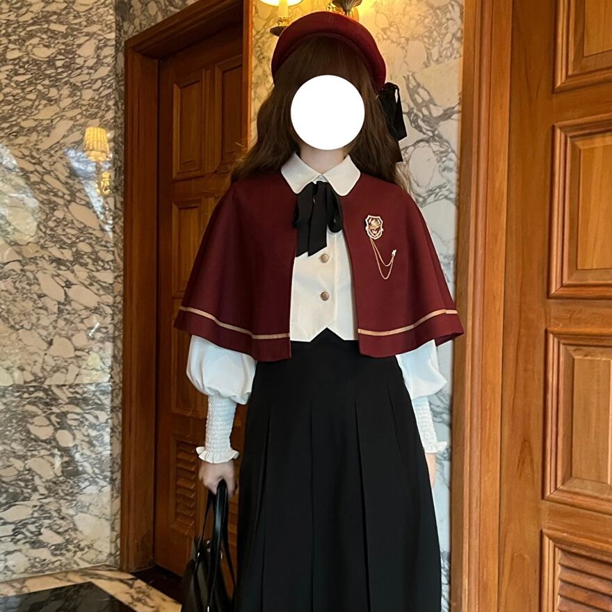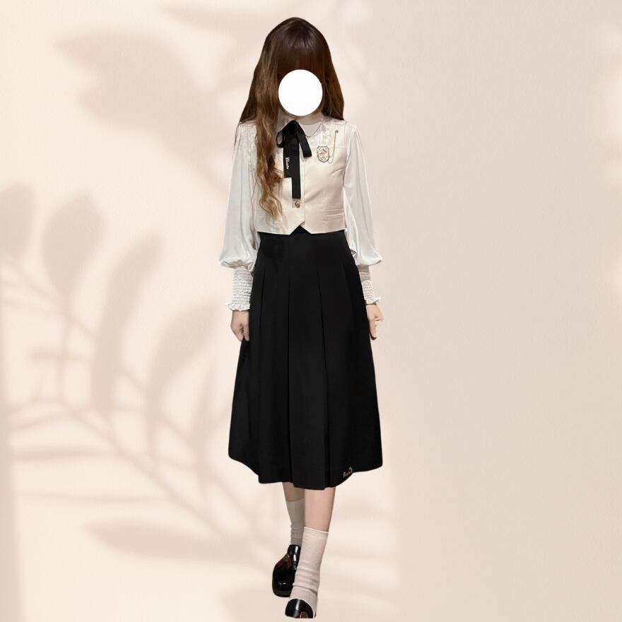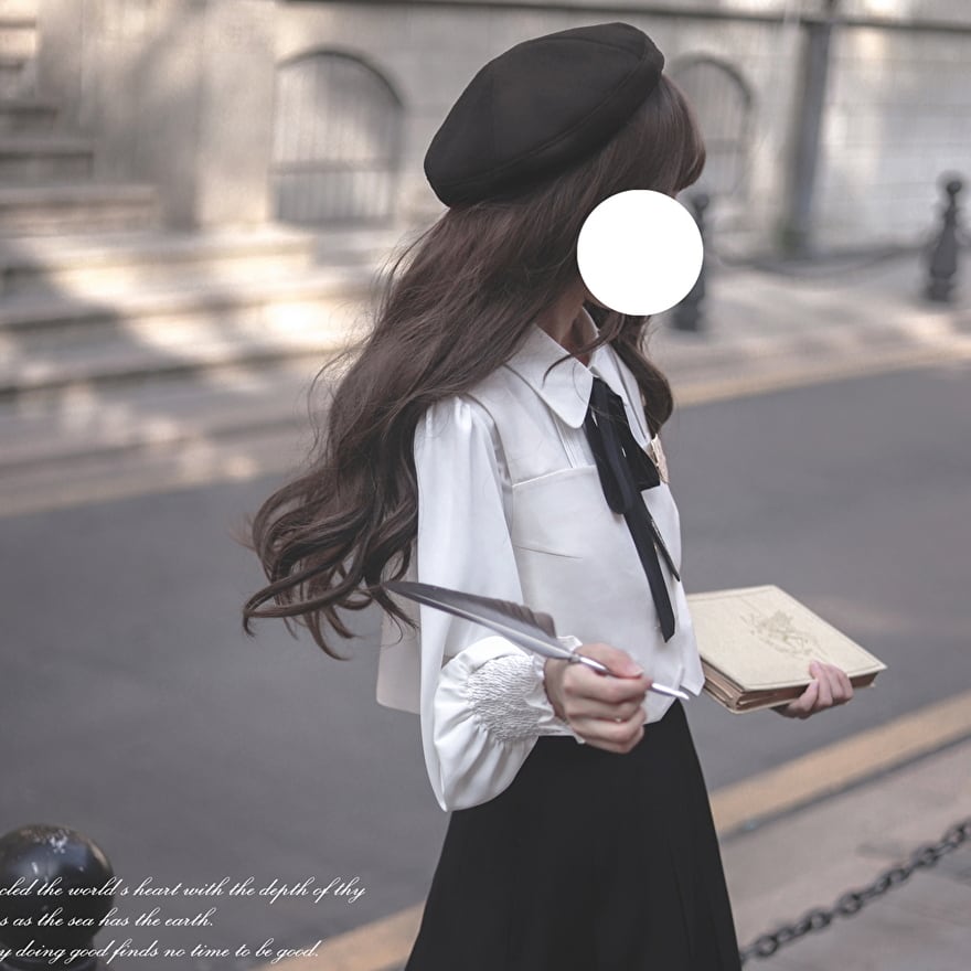 SEASONZ ロリータ好き ブラウス レトロ 袖リブ ギャザー リボン 学園服 制服 JK クラロリ レトロ 甘め ロリータ 可愛い コンカフェ イベント衣装 ゆめかわ