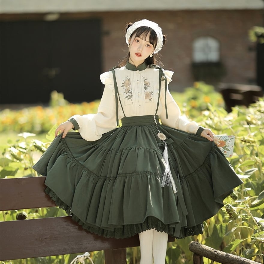 個性的なひまわり刺繍のロリータチャイナ服セットアップです。