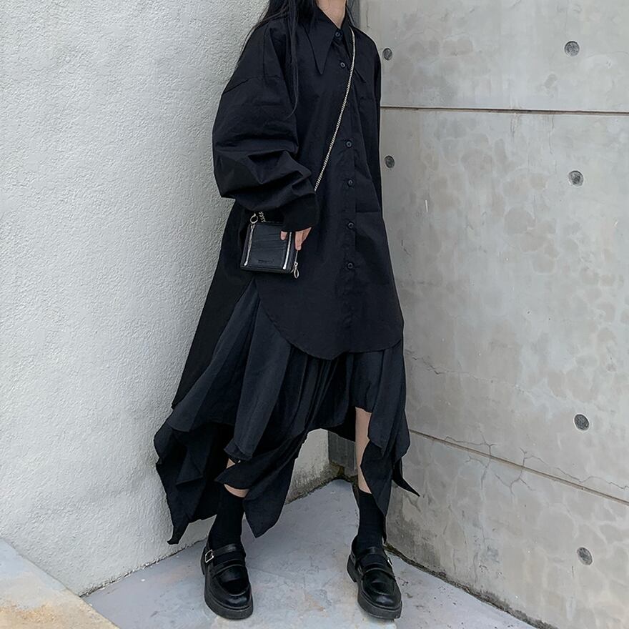 SEASONZ ロリータ好き アシンメトリー ロングスカート 山本耀司風 ロング丈 オーバーサイズ 病み可愛い ゴシック ストリート系 ゆめかわ