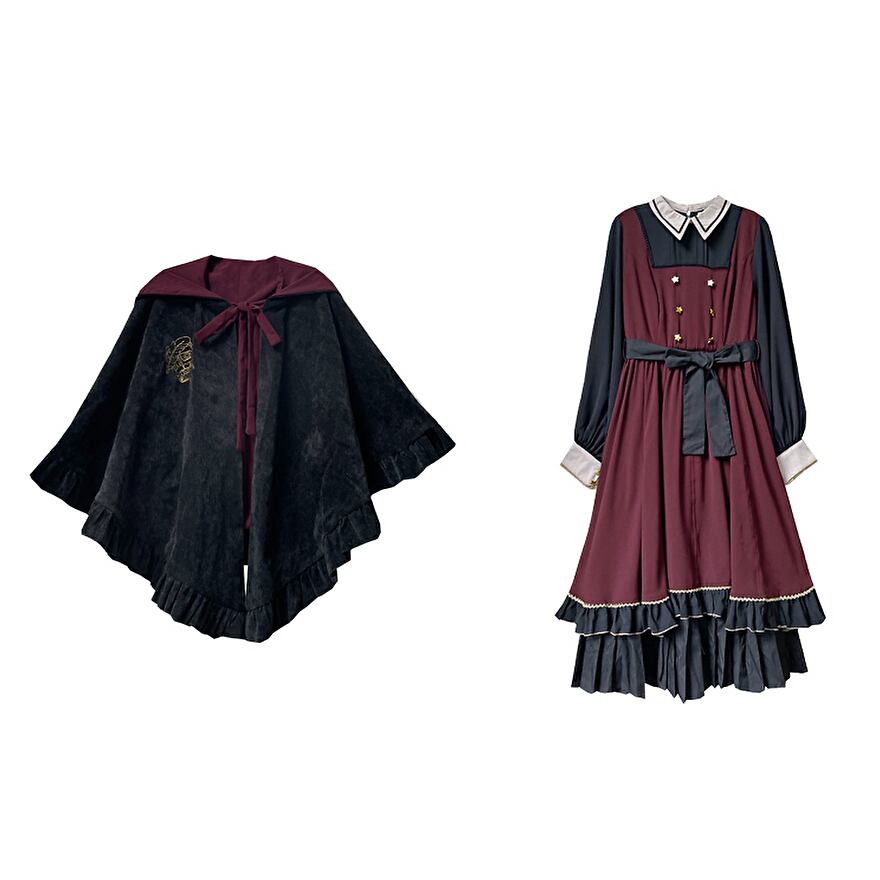 ノスタルジックなレトロデザインのクラロリマントとワンピースです