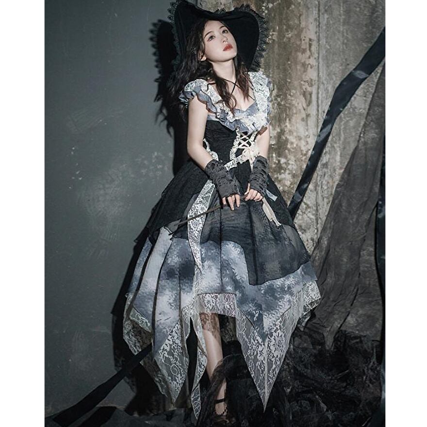 クラシカルなゴスロリ系ブラウスとアシンメトリースカートのセットアップです。