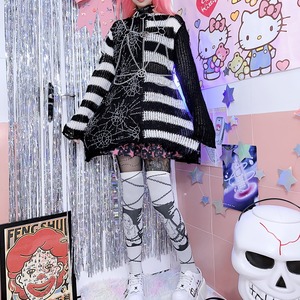 ボーダー柄にスパイダーの巣の絵柄が病み可愛い