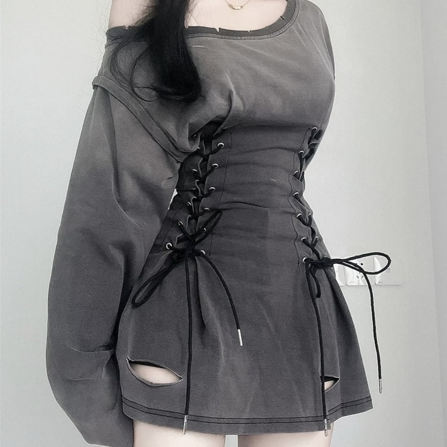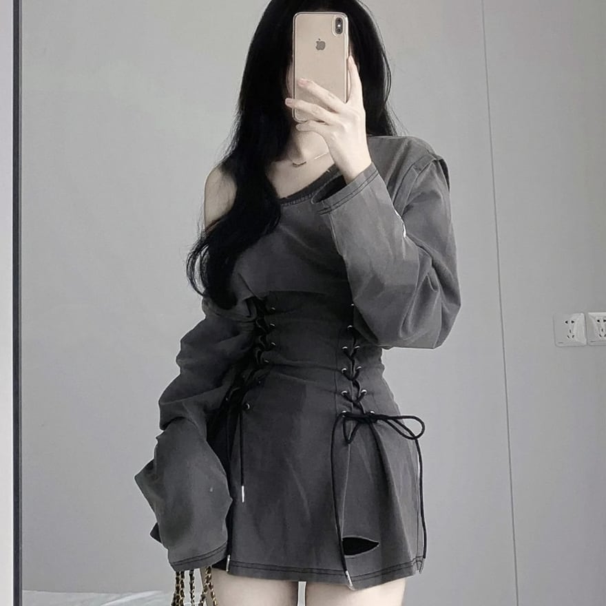 SEASONZ ミニワンピ レースアップ ワンショル ストリート系 韓国ファッション オルチャン プチプラ ゆめかわ