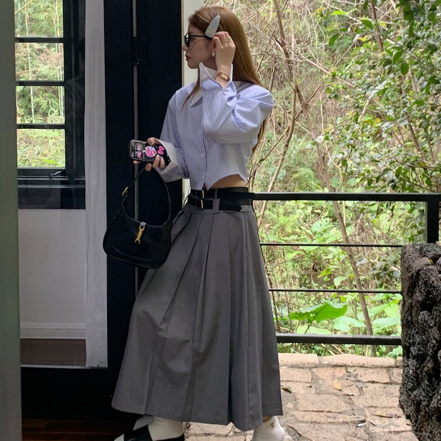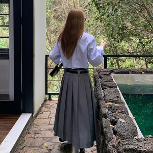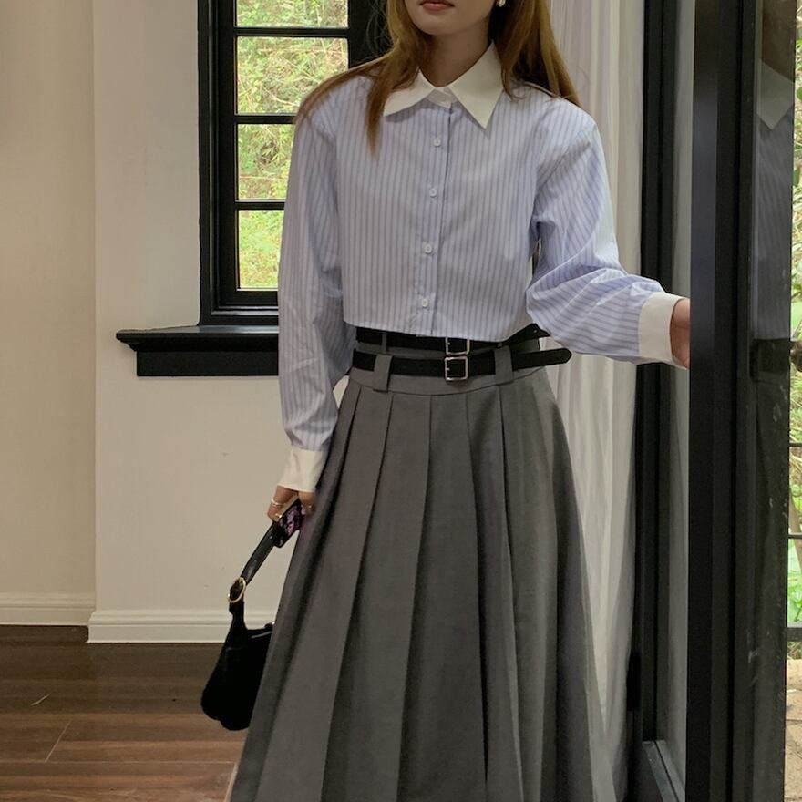 清涼感のあるストライプ柄がかっこいい韓国ファッション系長袖シャツです。