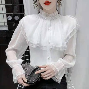 SEASONZ ブラウス シフォン dressy 大人きれいめ ネックギャザー フェイクパール ロリータ 韓国 オルチャン 高見え ゆめかわ