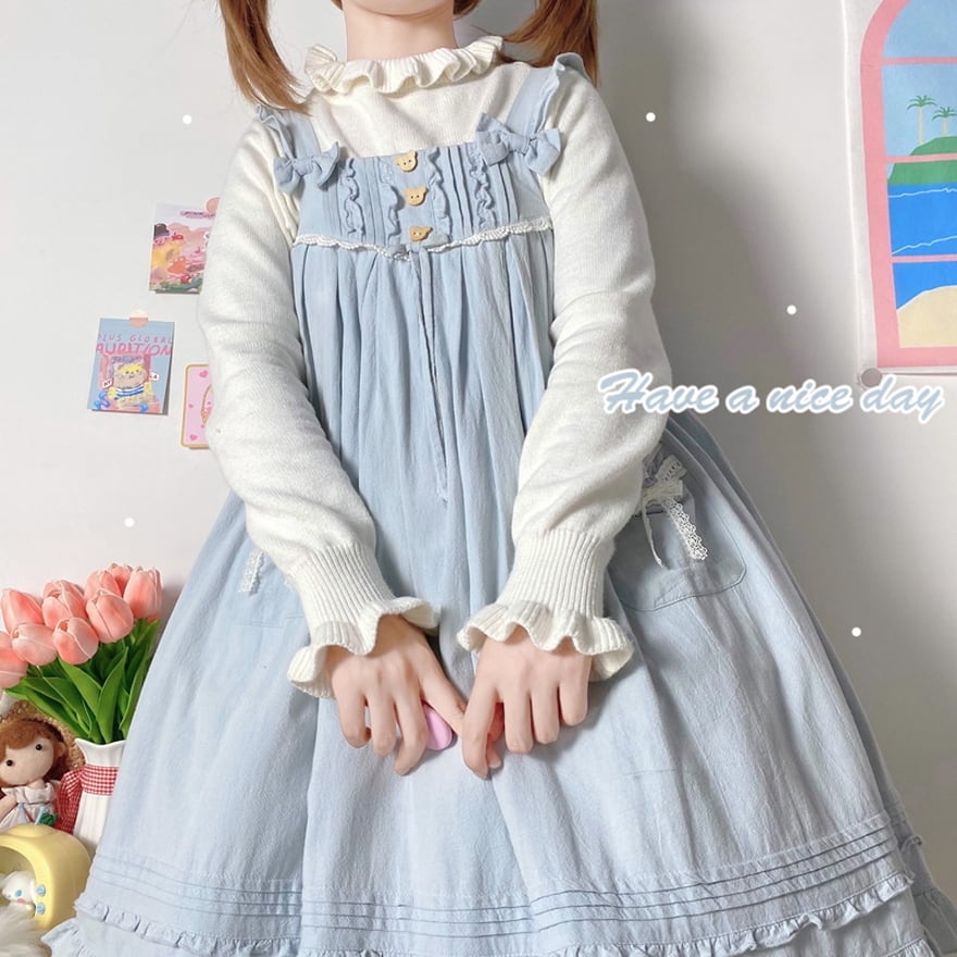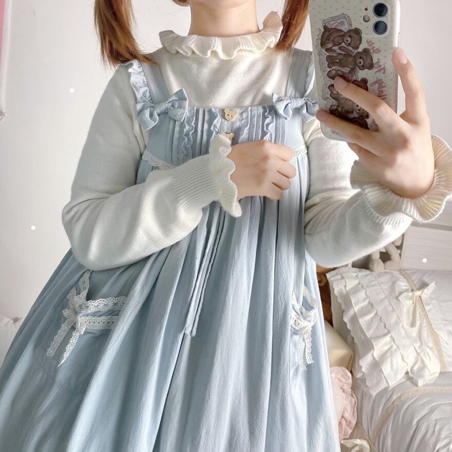 SEASONZ ロリータ服 ニット ロリータ JK ネックギャザー フリル ガーリー 甘め オルチャン 韓国 ゆめかわ