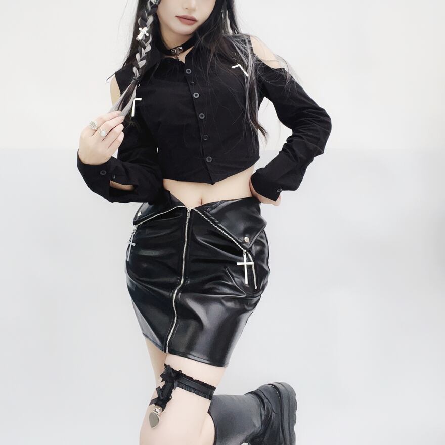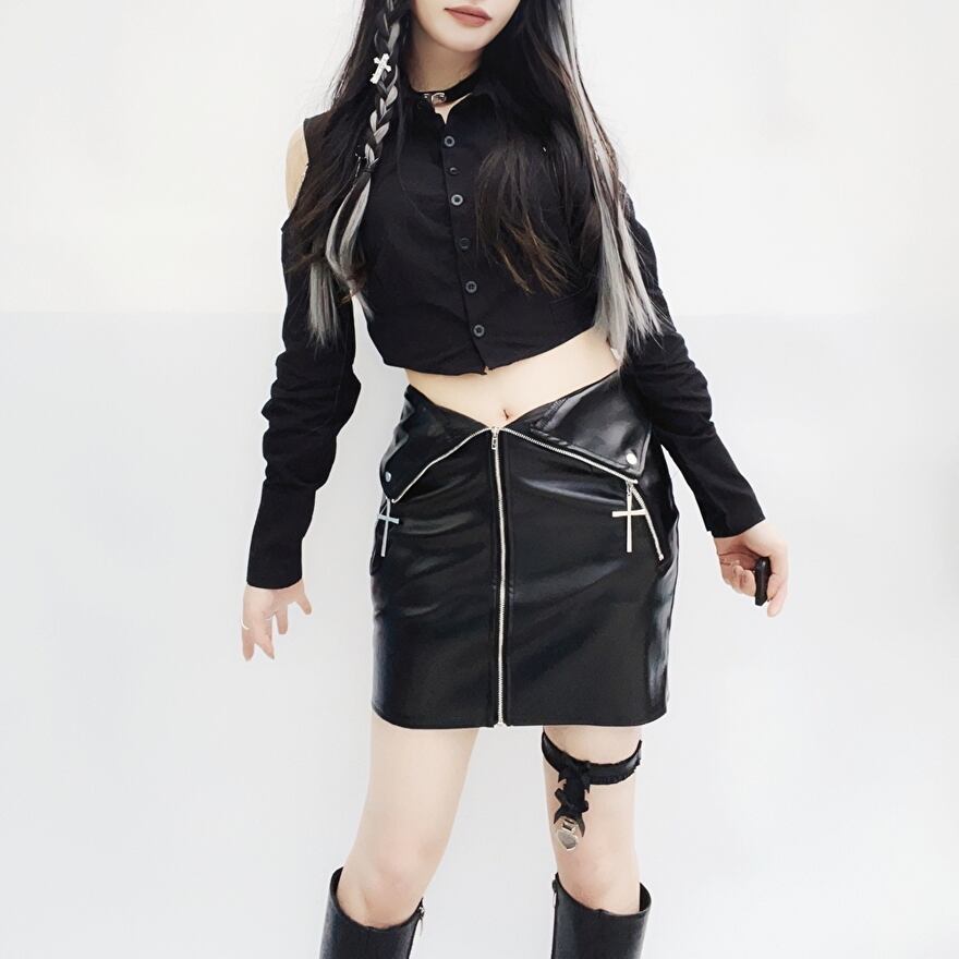 SEASONZ Miub ゴスロリ系 スカート PUレザー ZIPアップ クロス 十字架 高見え 暗黒系 ストリート系 病み可愛い ゴスロリ系地雷服 地雷女子 ゴスロリ服 ゆめかわ