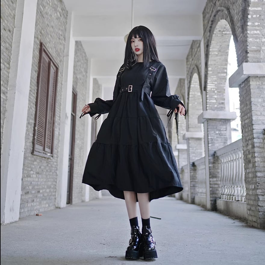 病み可愛いレトロなデザインのワンピにハーネスの2点セットです