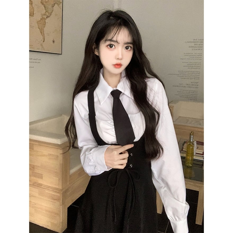 トップスはネクタイ付き、スカートはウエスト編み上げのフレアロングスカートです