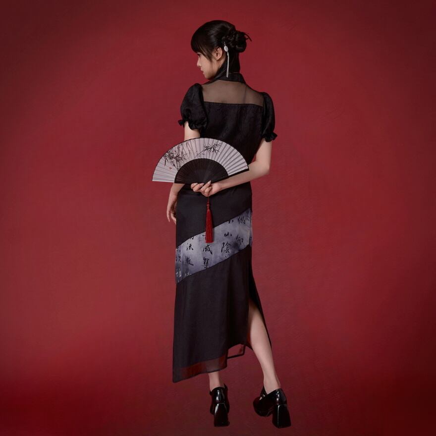 SEASONZ チャイナドレス ロング丈 タッセル 漢字柄 中華風 チャイナ服 華ロリ ストリート系 サブカル系地雷服 コンカフェ ゆめかわ