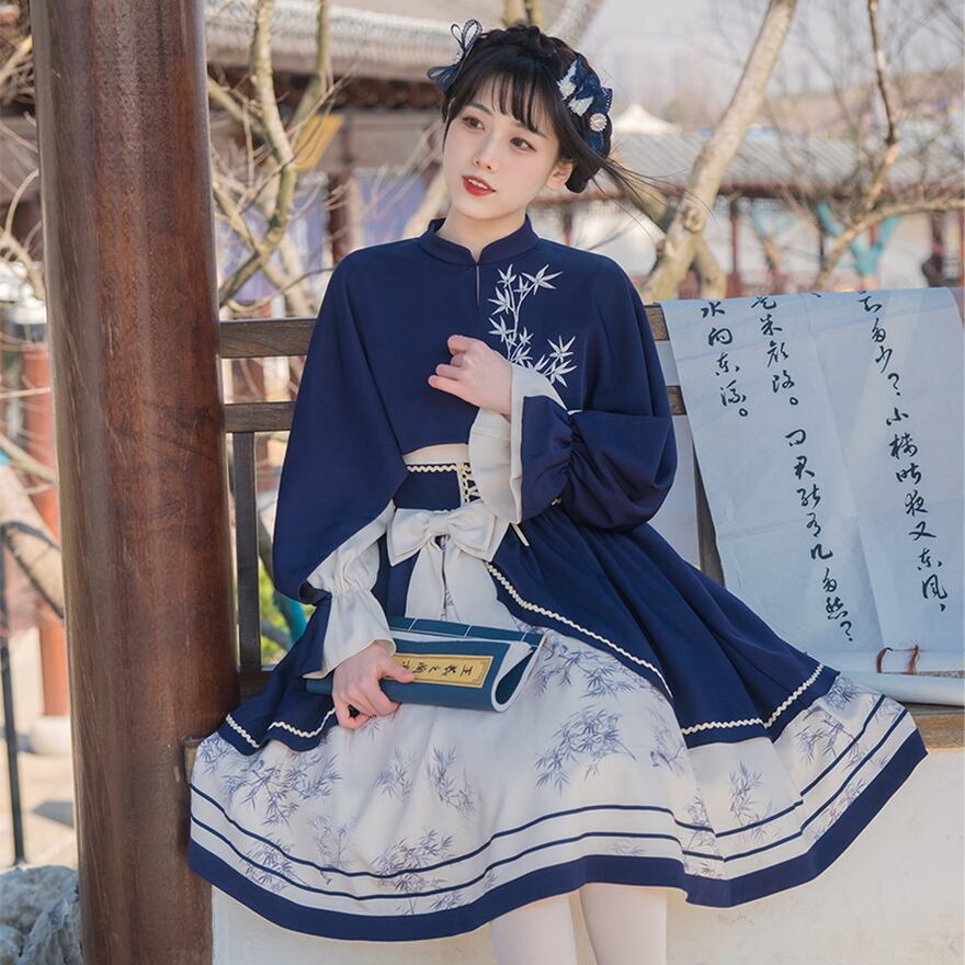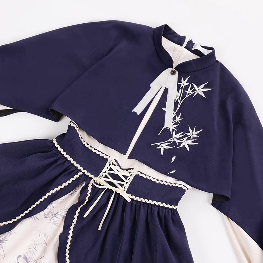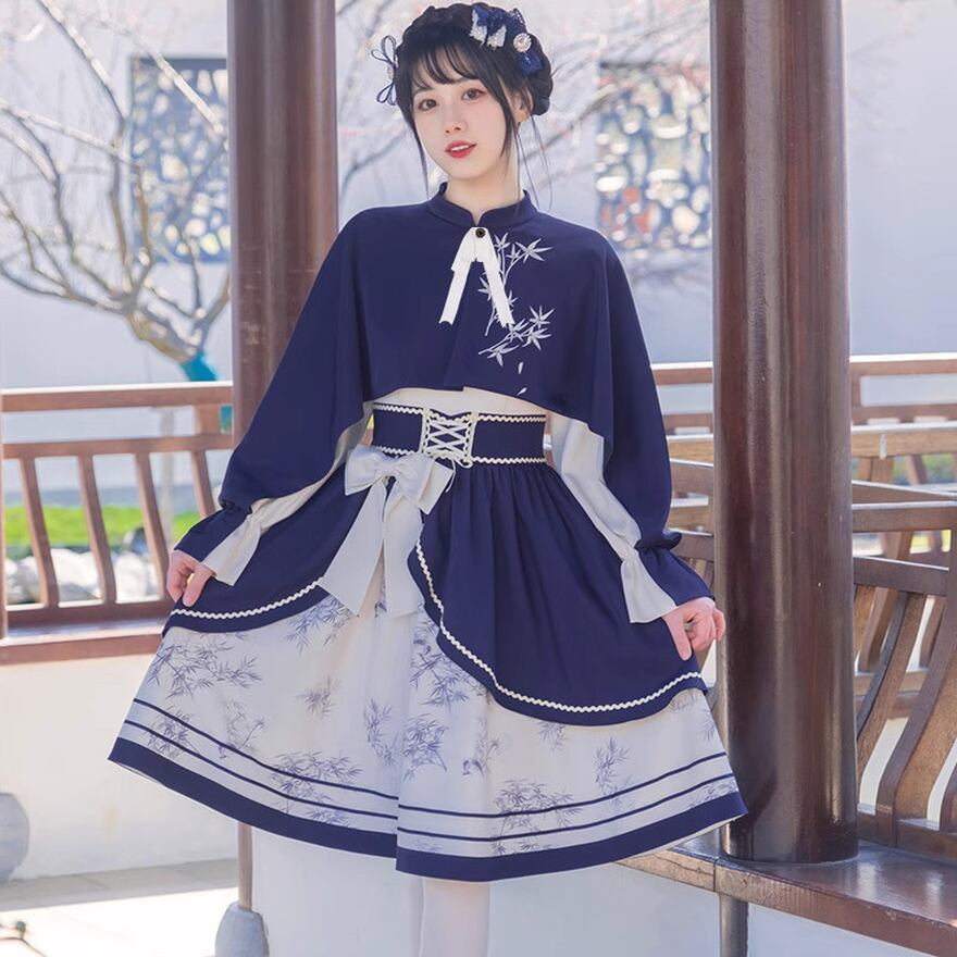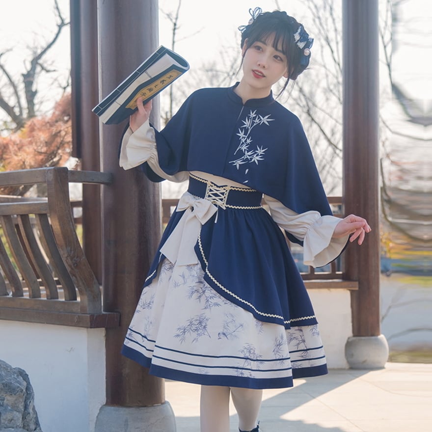 SEASONZ セットアップ マント ドレス チャイナ風 banboo 刺繍 スタンドカラー 袖コン レトロ 華ロリ サブカル系チャイナ服 ゆめかわ