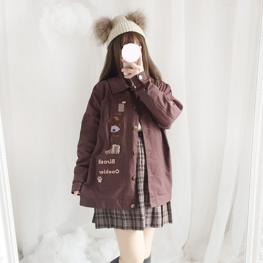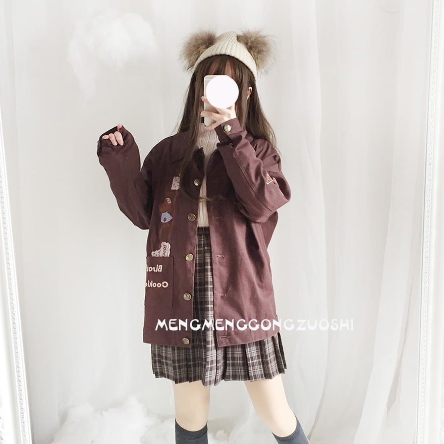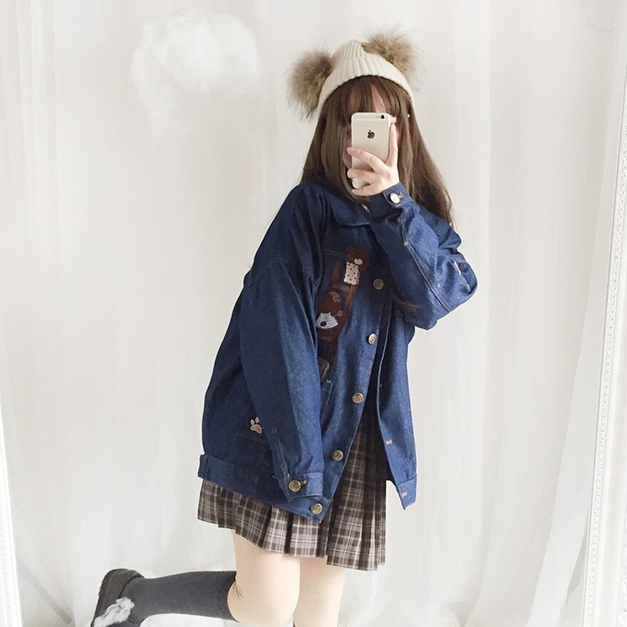 SEASONZ 梦梦の工作室シリーズ デニムジャケット ビスケット くまちゃん JK ソフトロリータ かわいい ゆめかわ