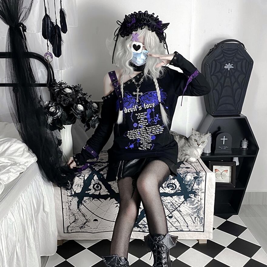 SEASONZ 長袖Tシャツ ワンショル ストラップベルト チョーカー ゴスロリ darkness 病み可愛い ゴシック 地雷服 バンギャ ゆめかわ