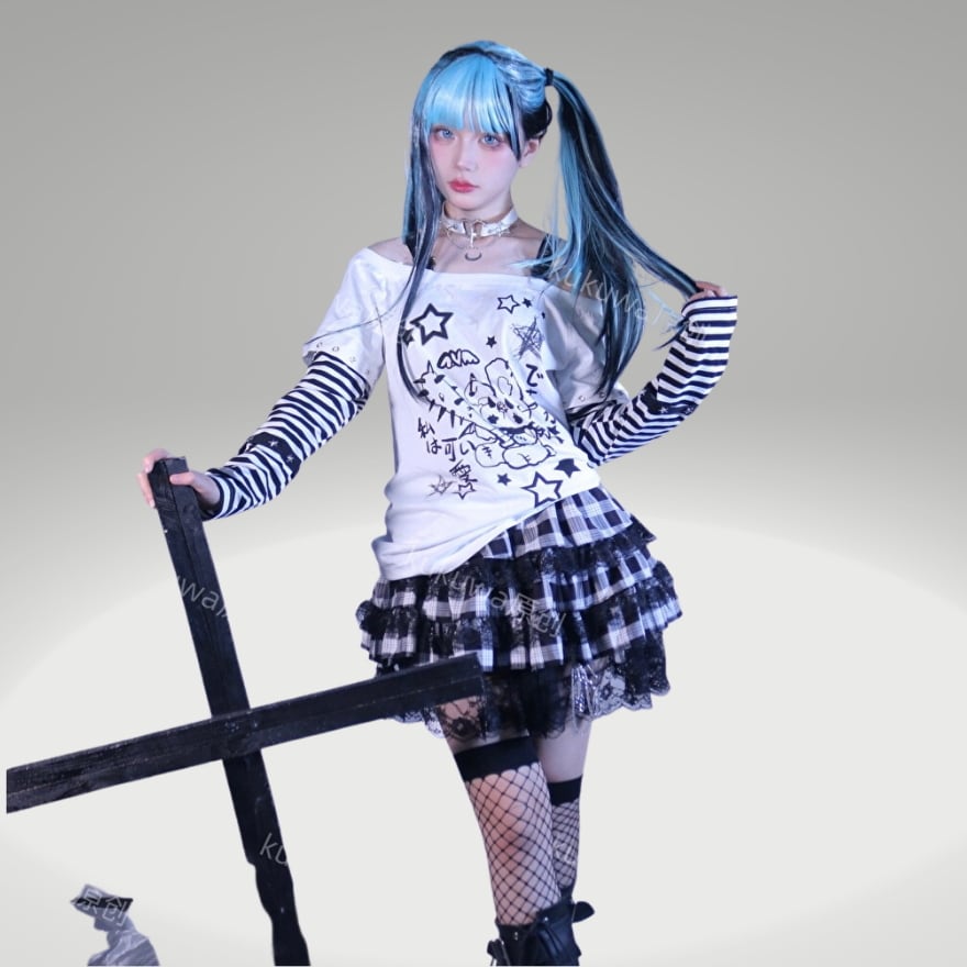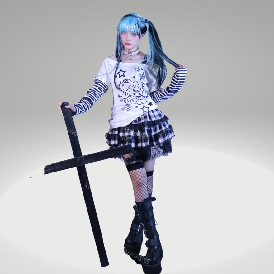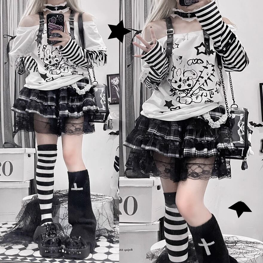 SEASONZ ミニスカ チェック柄 レース レイヤード ストリート系 パンク darkness 病み可愛い ゴシック 地雷服 バンギャ ゆめかわ