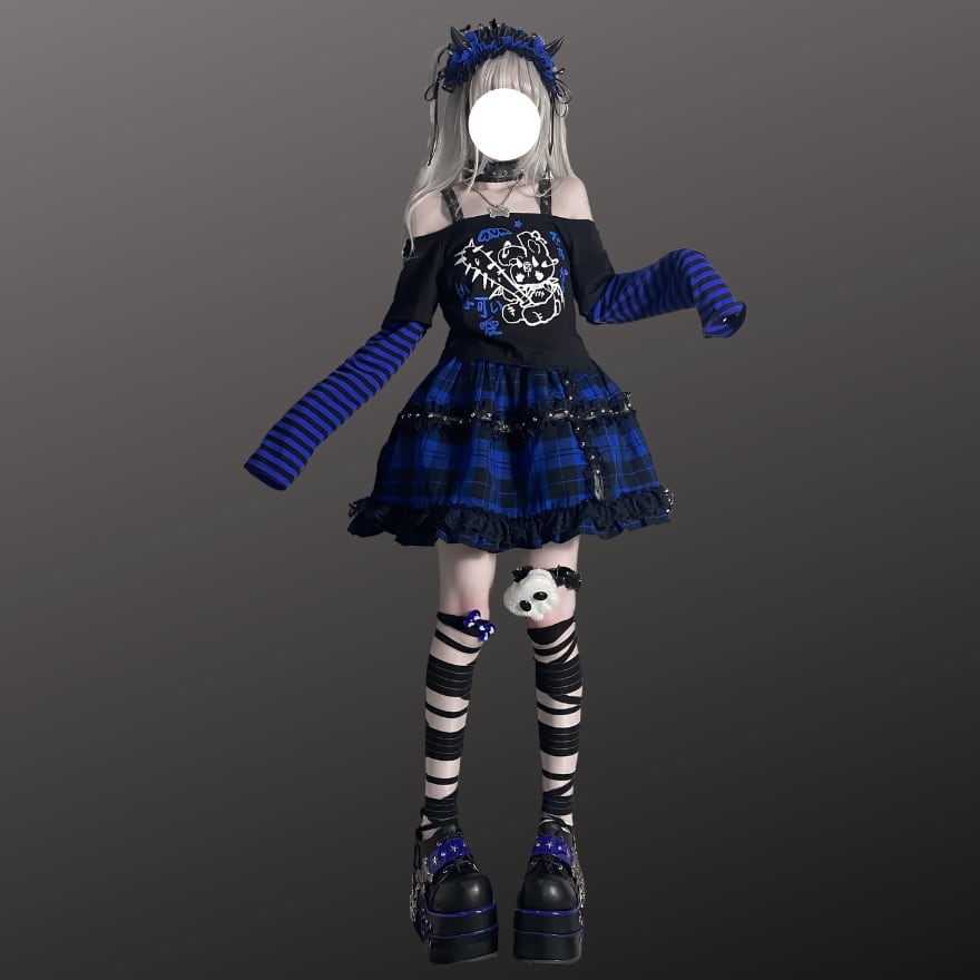 SEASONZ 長袖Tシャツ オフショル ストラップベルト ゴスロリ darkness 病み可愛い ゴシック 地雷服 バンギャ ゆめかわ