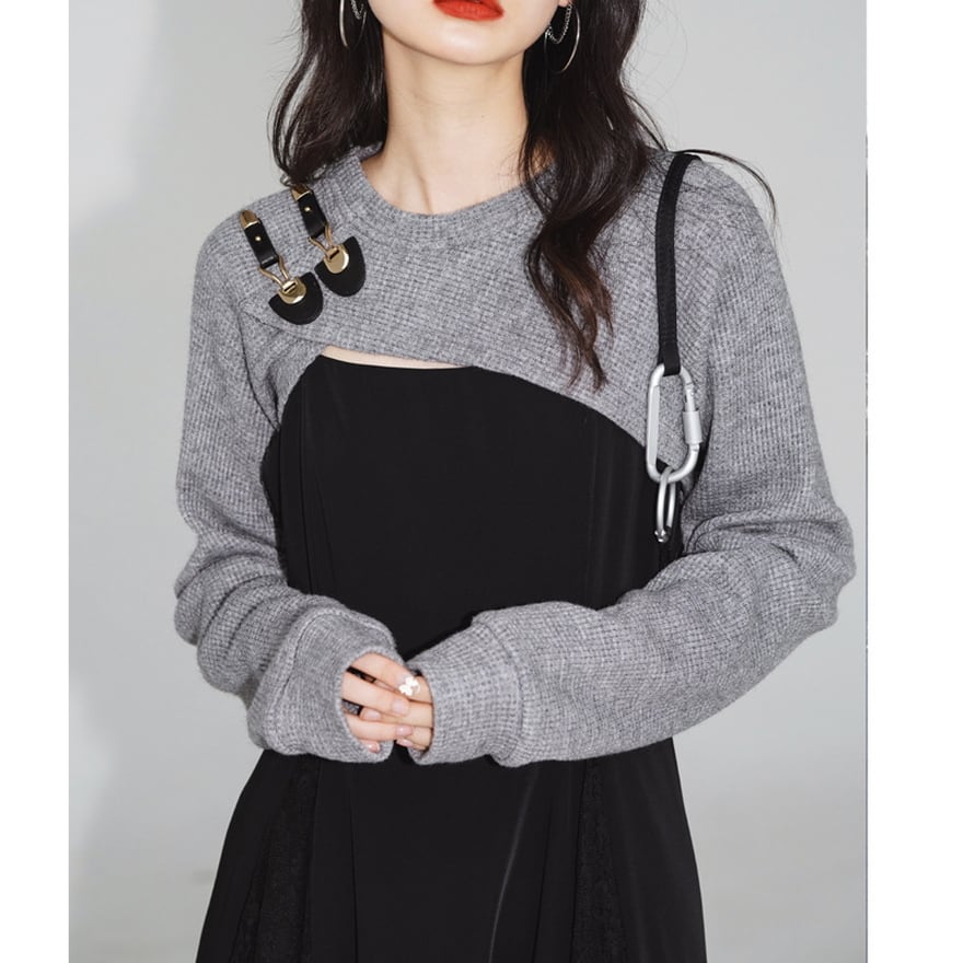 SEASONZ ツーピース ニット JSK ジャンパースカート ロング丈 スリット 透け感 ストリート系 大人きれいめ 韓国ファッション オルチャン 高見えデザイン ゆめかわ