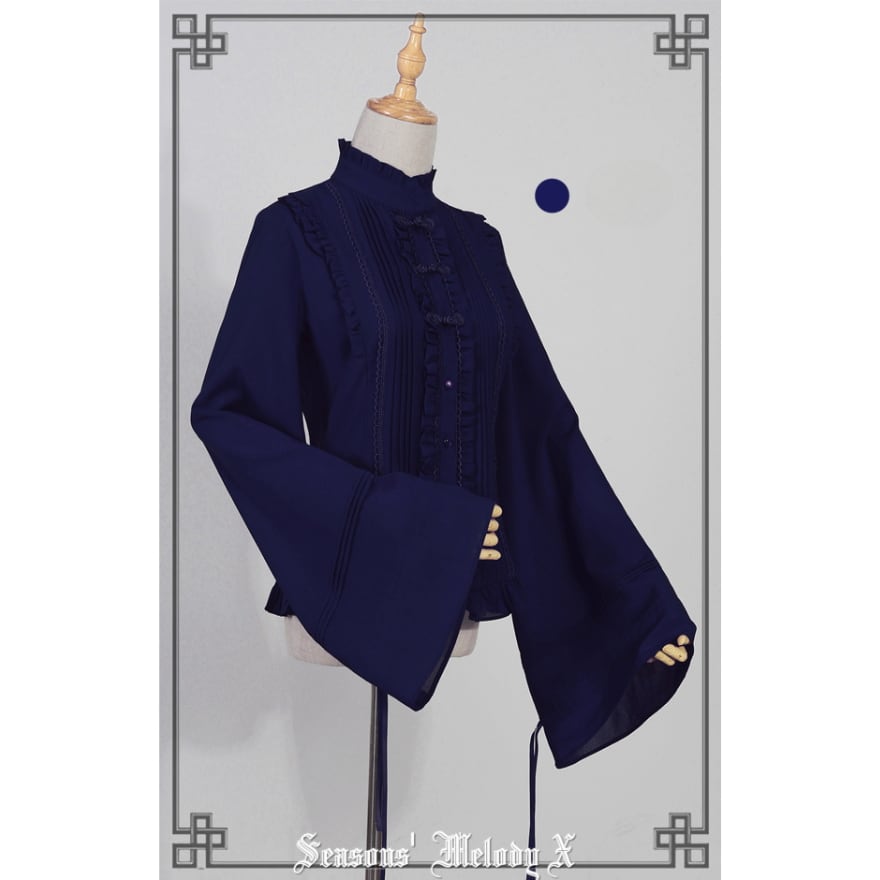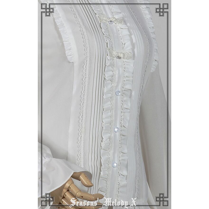 SEASONZ コンカフェ 衣装 チャイナ風 高級 豪華 ブラウス スタンドカラー トランペットスリーブ 袖コン フリル 華ロリ チャイナ服 チャイナ服 ゆめかわ