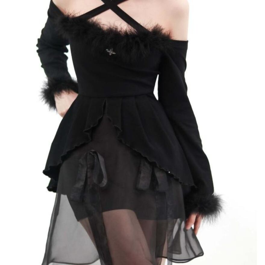 SEASONZ pinksavior 病み可愛い B?????C??ss 高級ファーオフショル ワンピ JK 可愛い 原宿系 ソフトロリータ ゆめかわ