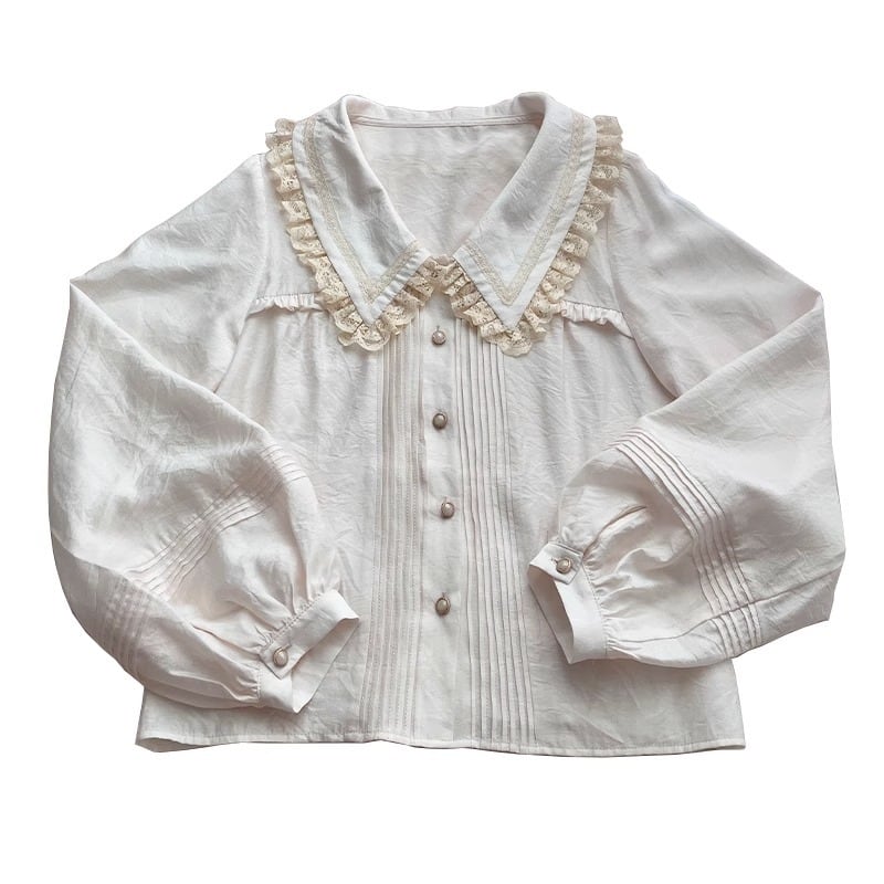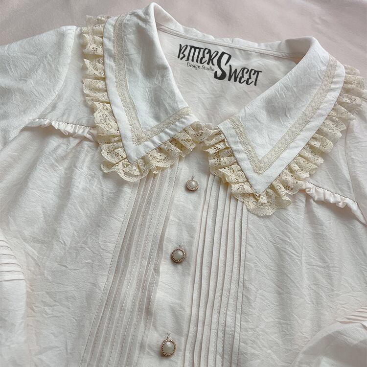 バルーンスリーブにアコーディオンプリーツが上品な控えめクラロリブラウスです。