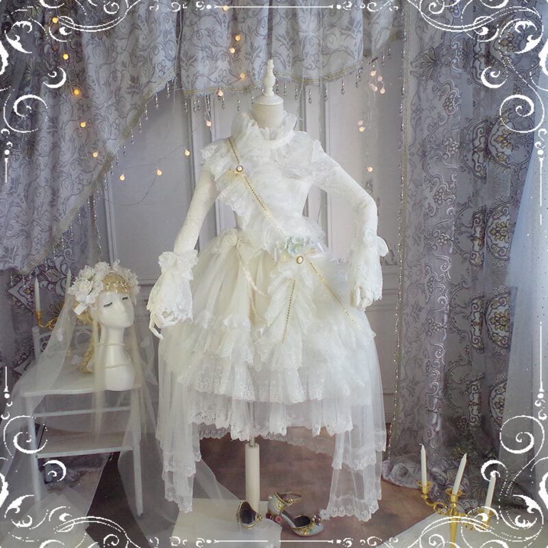 SEASONZ スイートロリータ ヘアドレス ベール ブライダルドレス 豪華 高級 Dressy ネックギャザー レース シアー トランペットスリーブ イベント パーティ ゆめかわ