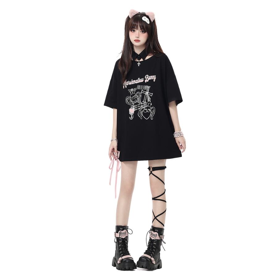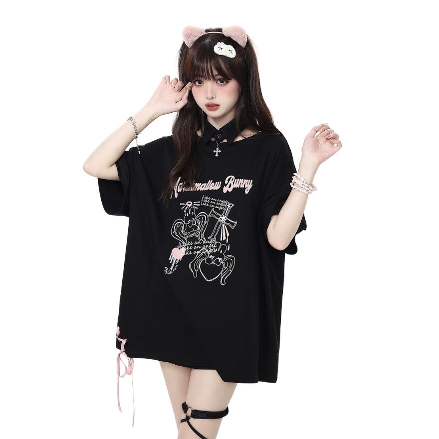 SEASONZ JKロリータ CRAZYGIRL ロングTシャツ 天使のバニー サイド編み上げ 春夏 レースアップ JK ロリータ ソフトロリータ かわいい ゆめかわ