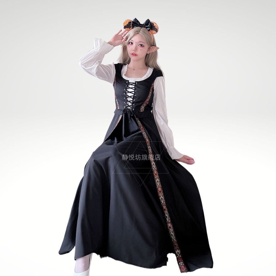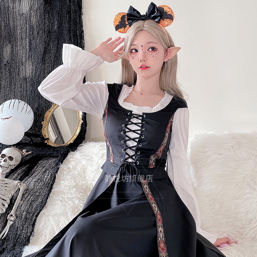 SEASONZ 静悦坊 ワンピース コスプレ ハロウィン 文化祭 学園祭 魔女 レトロ 編み上げ ロングスカート コスプレ衣装 イベント コンカフェ コスプレ 秋葉原 ゆめかわ
