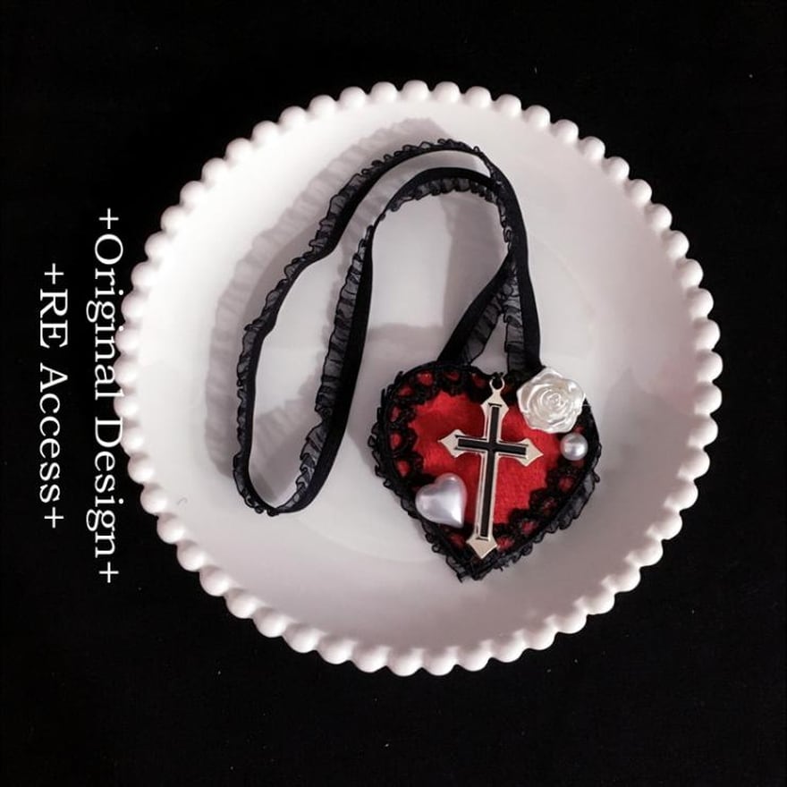 シングルタイプで十字架のデザインにフリルをプラス。ダークな雰囲気に可愛さも加えた、ロリータゴス好きにはたまらないデザインです。