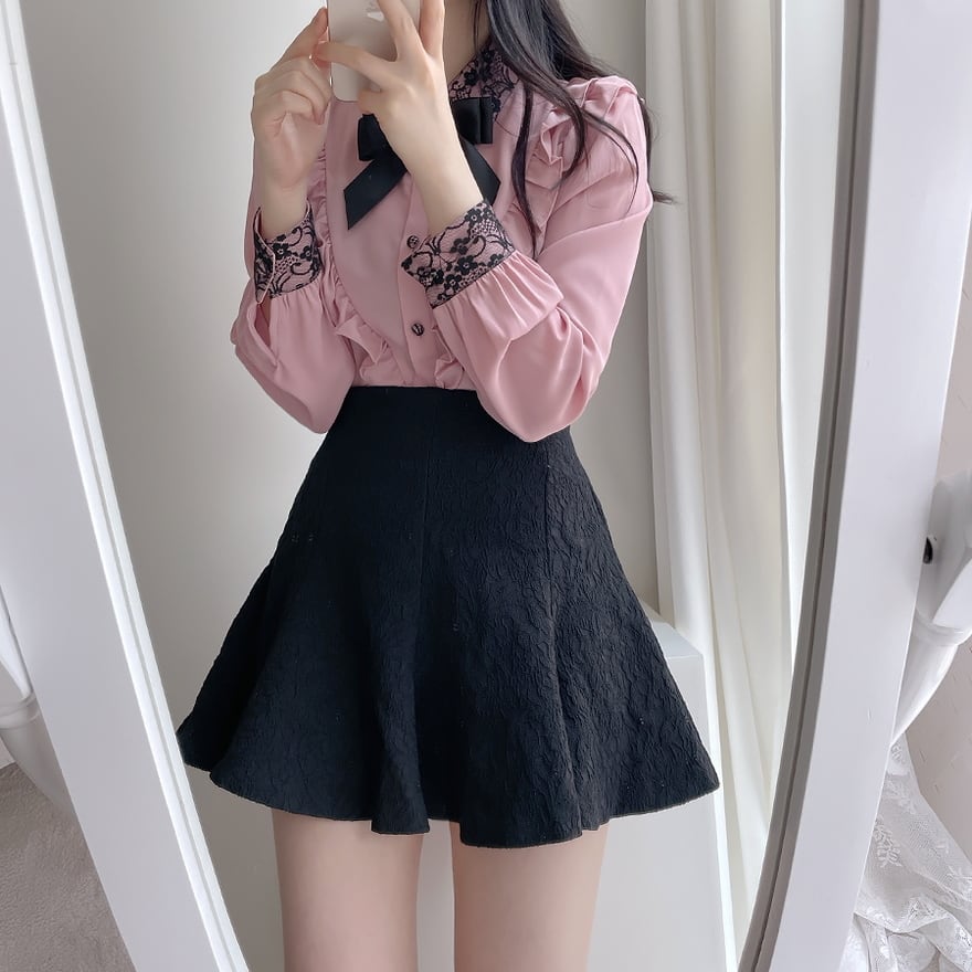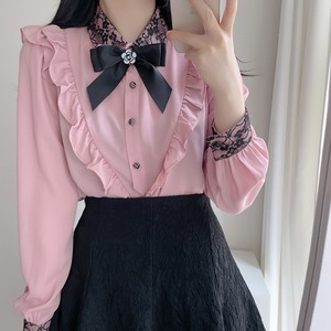 SEASONZ ブラウス ロリータ スイートロリータ レース 上品 リボン カメリア エレガント 白 ピンク ゆめかわ