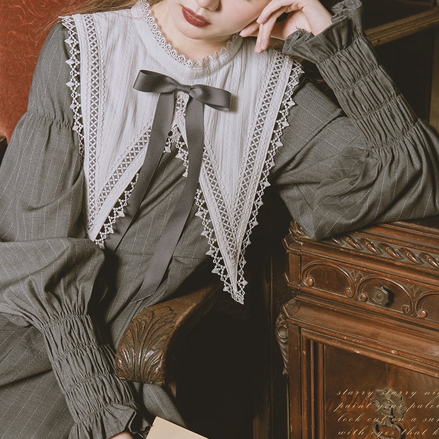 SEASONZ クラロリ ワンピース ミドル丈 ノスタルジック クラシカル つけ襟付き ピンストライプ柄 控えめ ゆめかわ