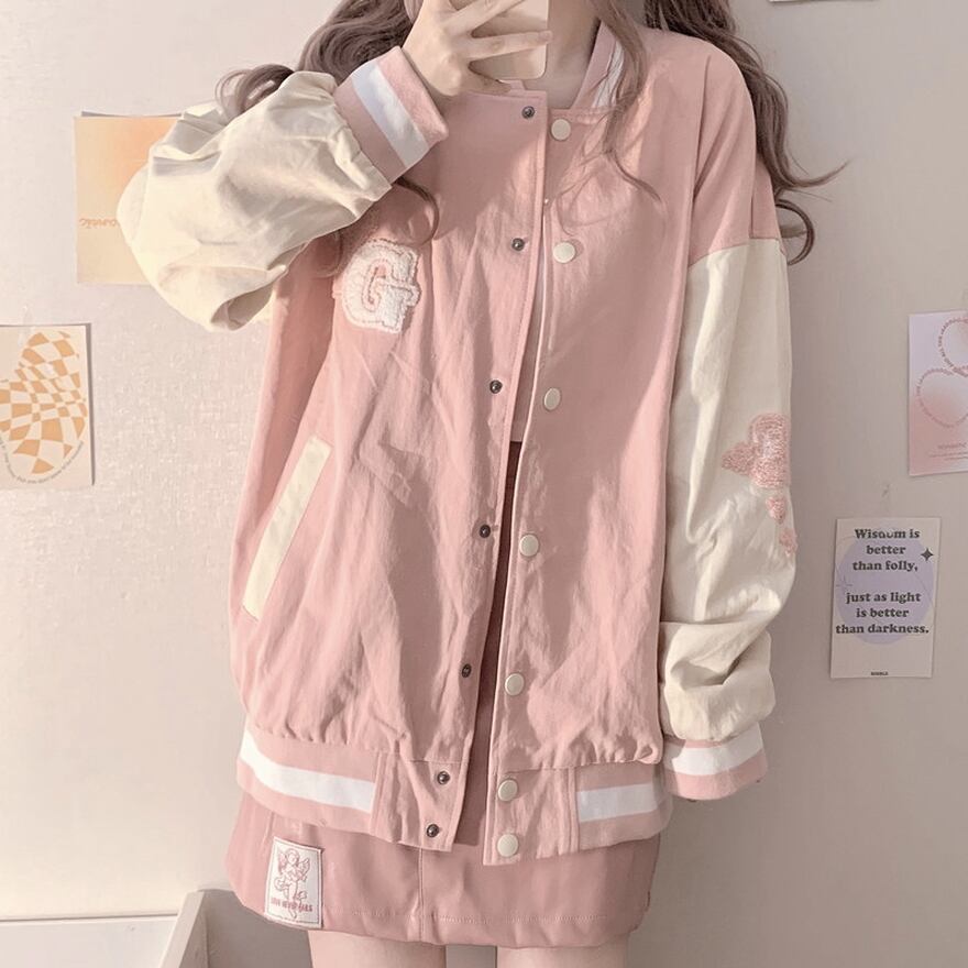 SEASONZ ソフトロリータ ジャンパー 春秋 スタジャン 野球ユニフォーム ピンク JKファッション ゆめかわ