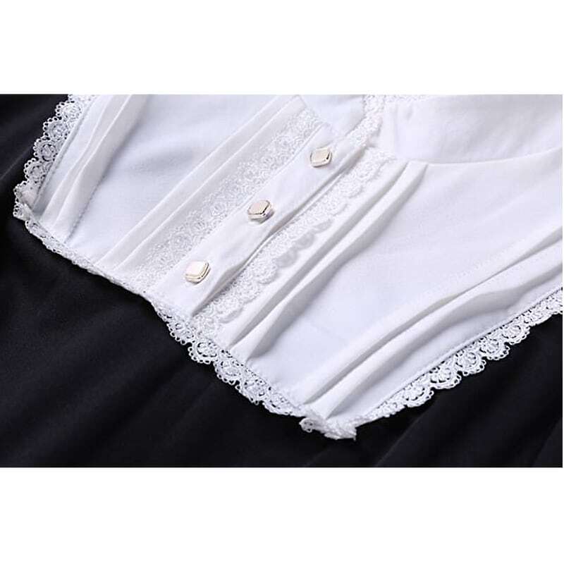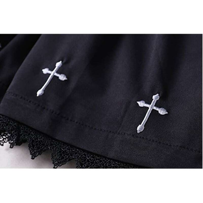 黒を基調とした配色に十字架のモチーフと豪華なレースがあしらわれた、ゴシックな雰囲気が特徴。また、フレアースカートで女性らしいシルエットに仕上げています。