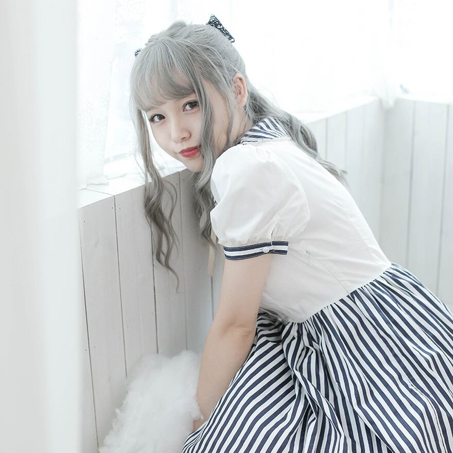 半袖で涼しげなストライプ柄が特徴で、レトロな雰囲気も漂います。ソフトロリータスタイルから、普段着使いまで幅広く楽しめるデザインです。