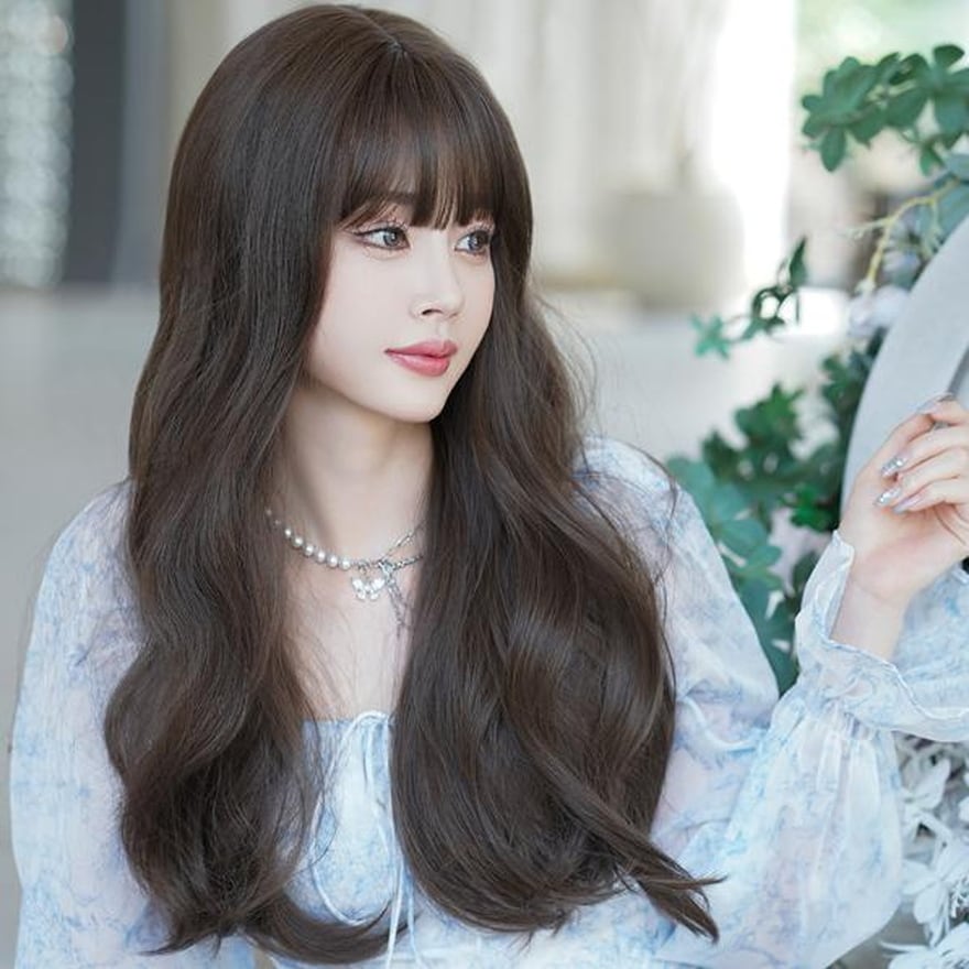 ブラウンカラーのナチュラルなロングウェーブのヘアウイッグです