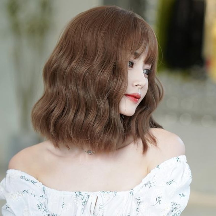 ブラウンカラーのナチュラルカールのヘアウイッグです