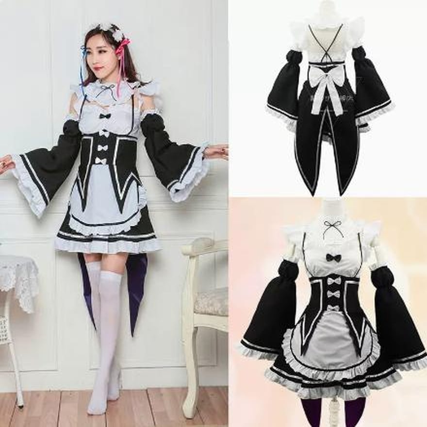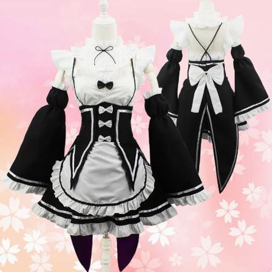 SEASONZ ロリータブランド 静悦坊 コンカフェ コスプレ ハロウィーン 文化祭 学園祭 コスプレ衣装 メイド服 白ストッキング付き レム 異世界 コスプレ衣装 ゆめかわ