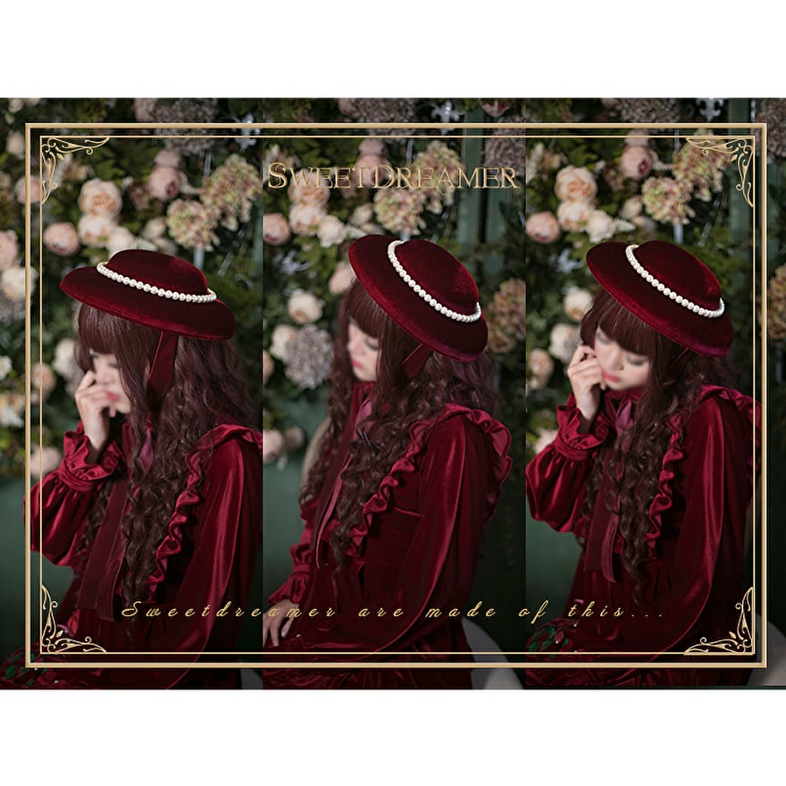 SEASONZ クラロリ ハット フェイクパール ティファニーで朝食を 豪華 上品 エレガント フェミニン レッド ブラック ホワイト パウダーピンク ゆめかわ