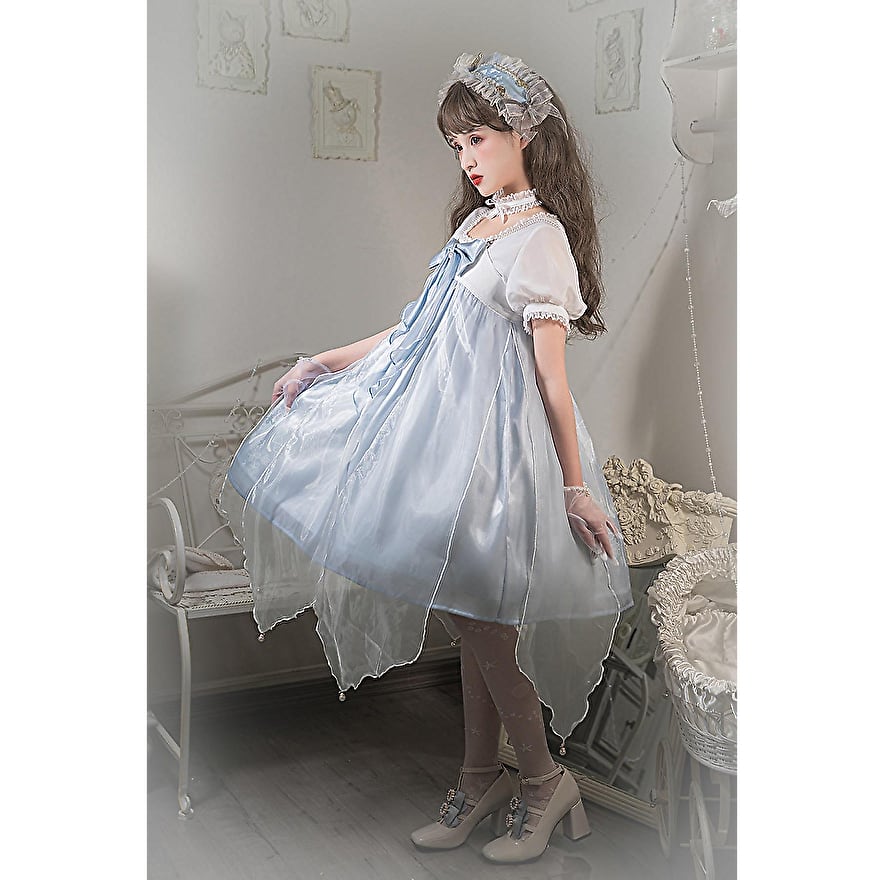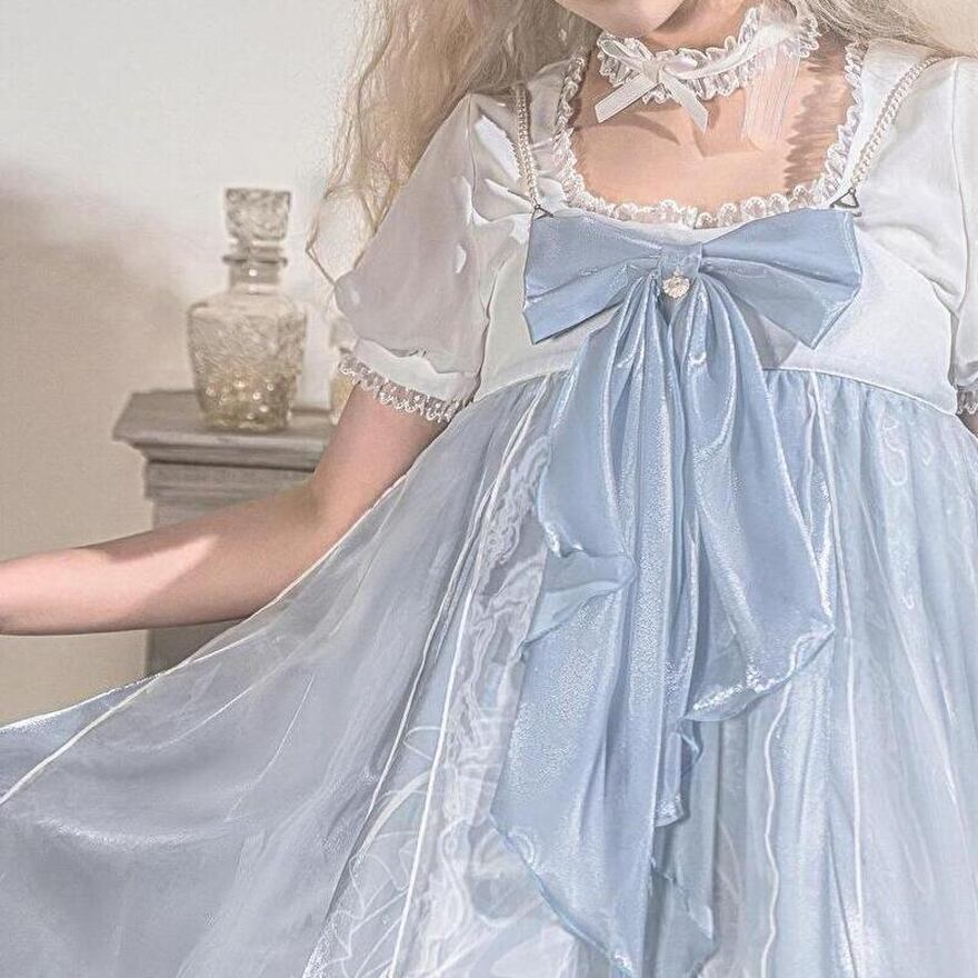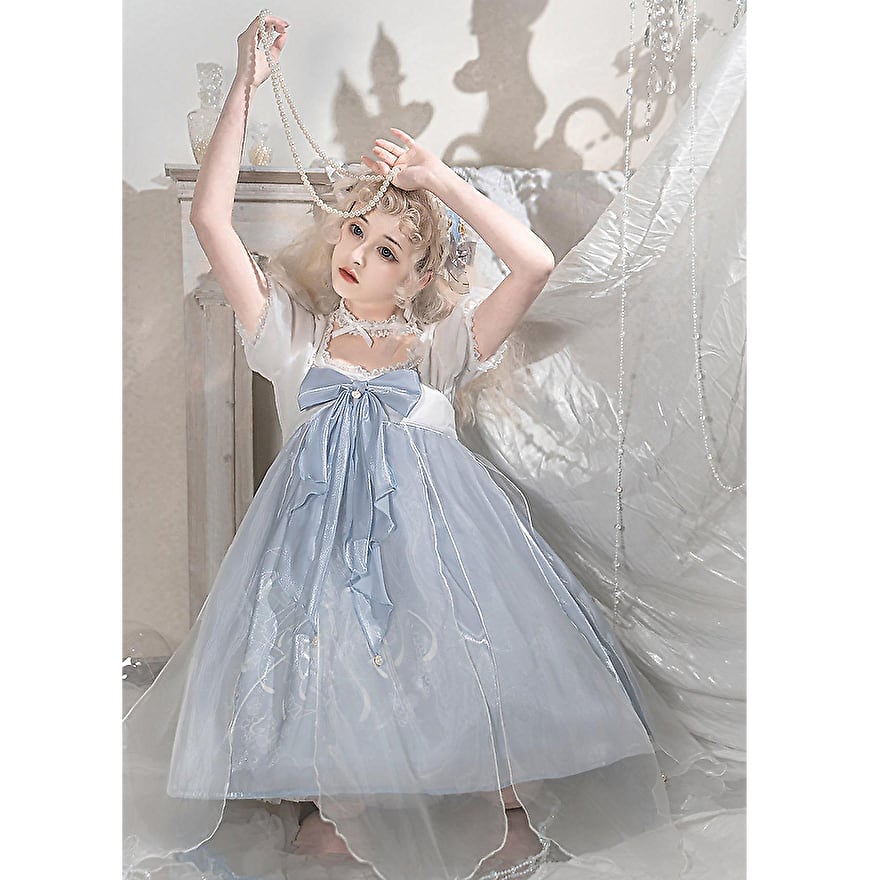SEASONZ 甘ロリ ツーピース ブラウス JSK ジャンパースカート レースレイヤード スカートカバー パステルカラー リボン ゆめかわ ロリィタ lolitaいい ろりーた 服