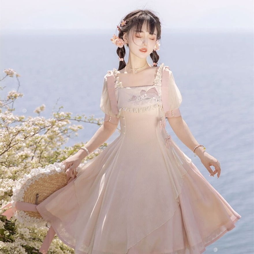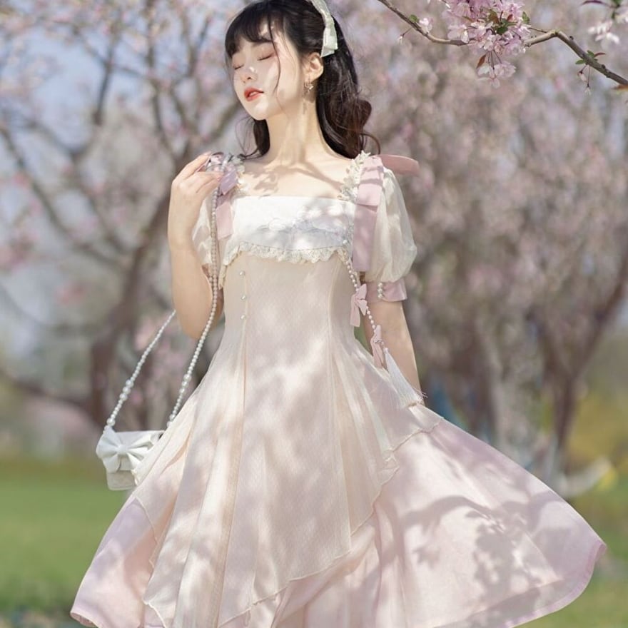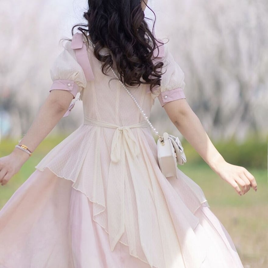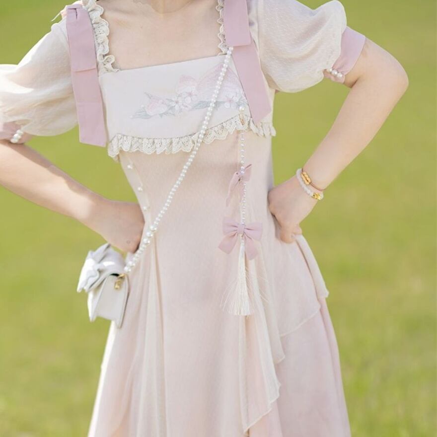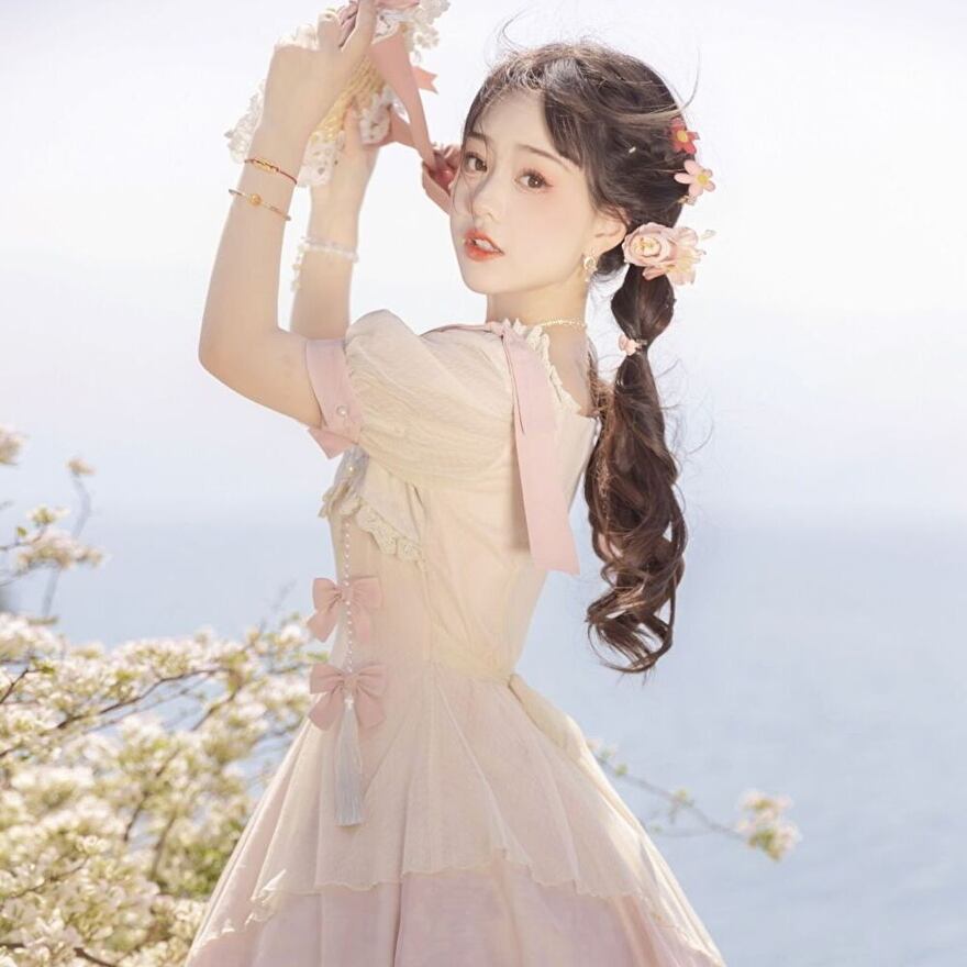 SEASONZ 華ロリ 中華ロリータ チャイナ風 ワンピース 刺繍 スカートカバー レース ピンク ゆめかわ