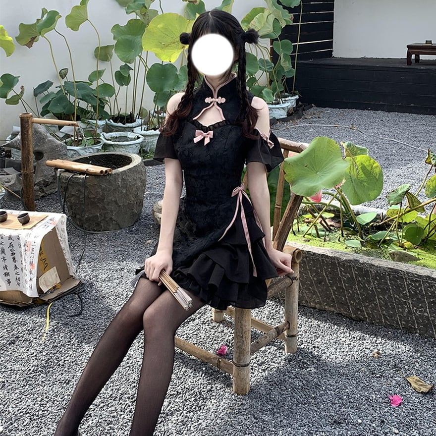 SEASONZ 華ロリ 中華ロリータ チャイナ風 チャイナドレス オフショル レイヤード フリルスカート スタンドカラー ゆめかわ
