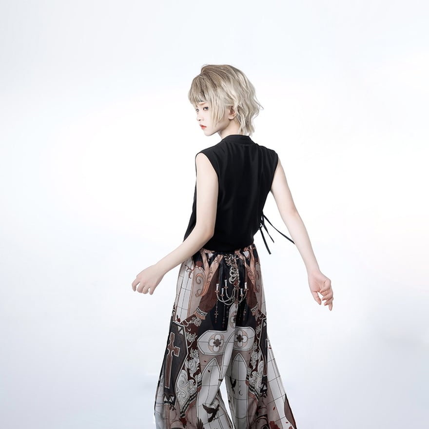 SEASONZ ロリータ 少年装 PrincessChronicles ノースリーブ Darkness V字ネック ワンポイント 病みかわいい 地雷系 バンギャ ゆめかわ