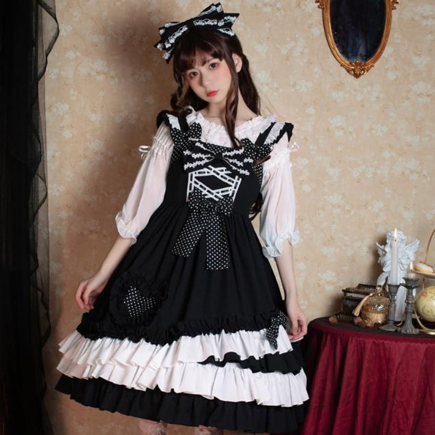 SEASONZ ブランド Eieyomi ゴスロリ 春夏 JSK ジャンパースカート ケーキスカート 水玉 リボン ガーリー 甘め lolita 甘め ろりーた 服