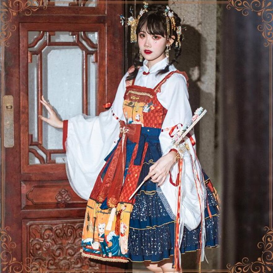 SEASONZ 華ロリ 中華ロリータ チャイナ風 チャイナ風 漢服 華ロリ シャツ 立ち襟 チャイナ風 トランペットスリーブ かわいい ガーリー lolita 甘め ろりーた 服