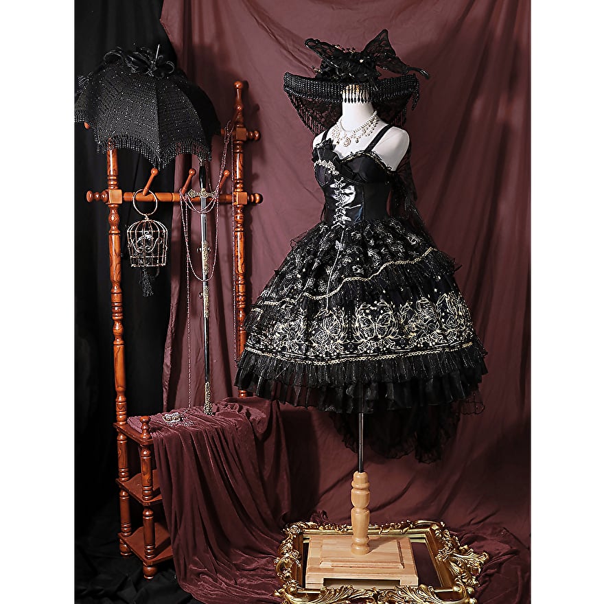 写真のヘッドドレス、ネックチェーン、パールネックレス、スリーブカバー、手袋、スカートテール、パニエは付属していません。