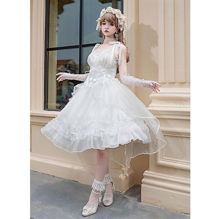 SEASONZ スイートロリータ JSK ジャンパースカート プリンセス ホワイトロリータ 豪華 上品 レースレイヤード フリル 甘め lolita 甘め ろりーた 服