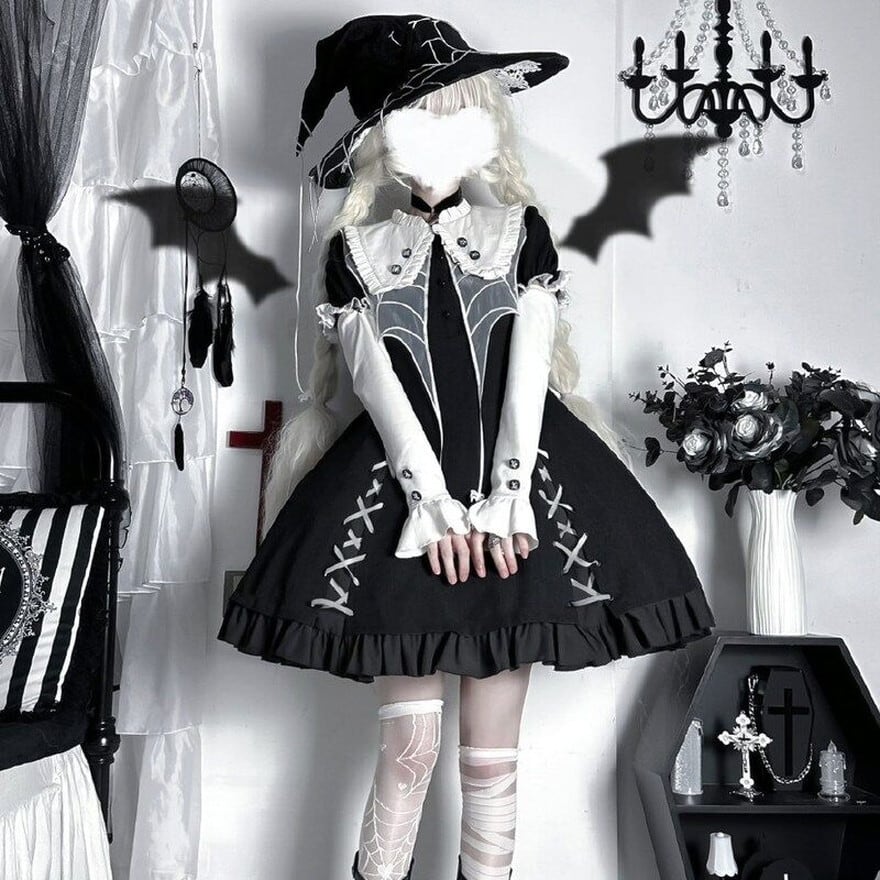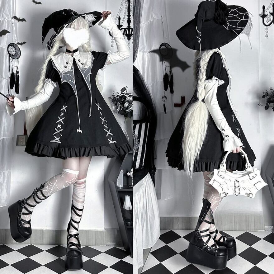 SEASONZ ゴスロリ スパイダー ウィッチ ワンピース 半袖 蜘蛛 魔女 病みかわ darkness ろりーた 服